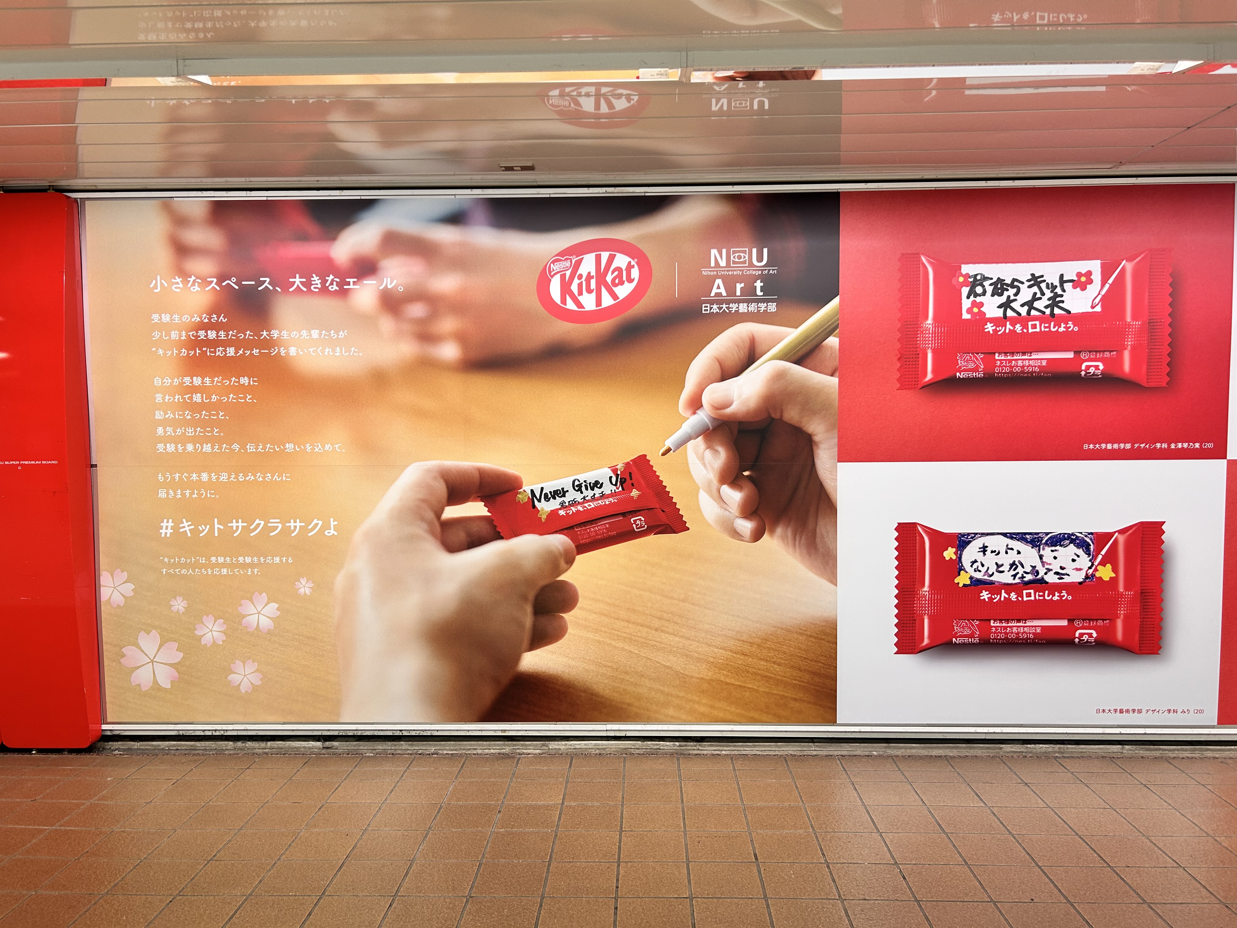 こちらは受験生に向けたキットカットの広告なのですが、日本大学藝術学部とコラボした内容となっております。