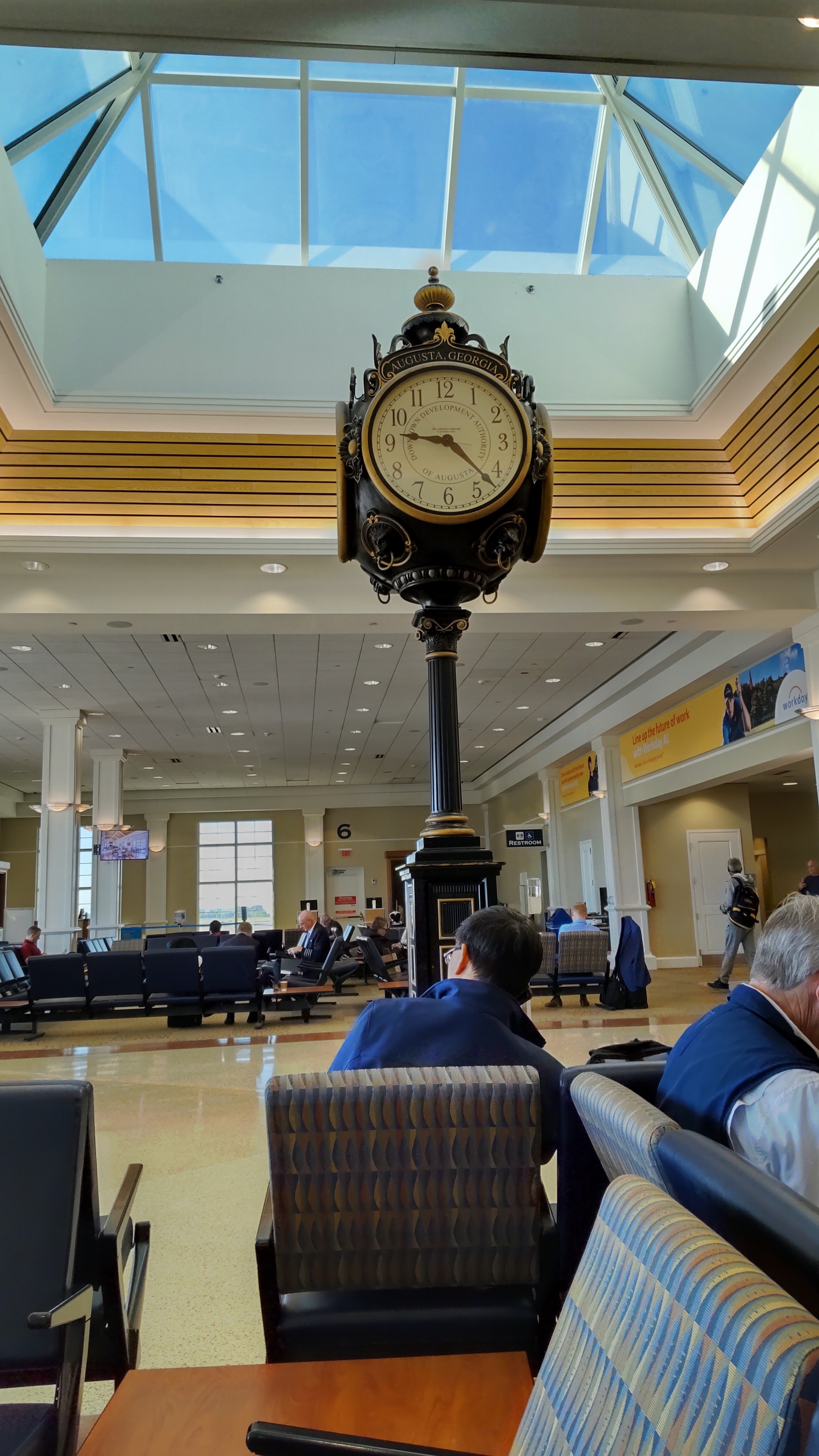 ジョージア州で3番目の規模を誇るオーガスタ市では、空港をはじめ、オーガスタ・ナショナル以外のゴルフ場などにも写真のようなクロックが設置されており、街全体に統一感と趣があります。
